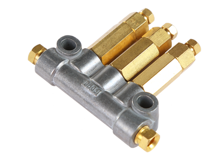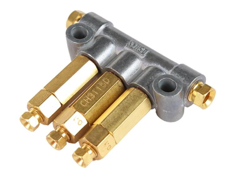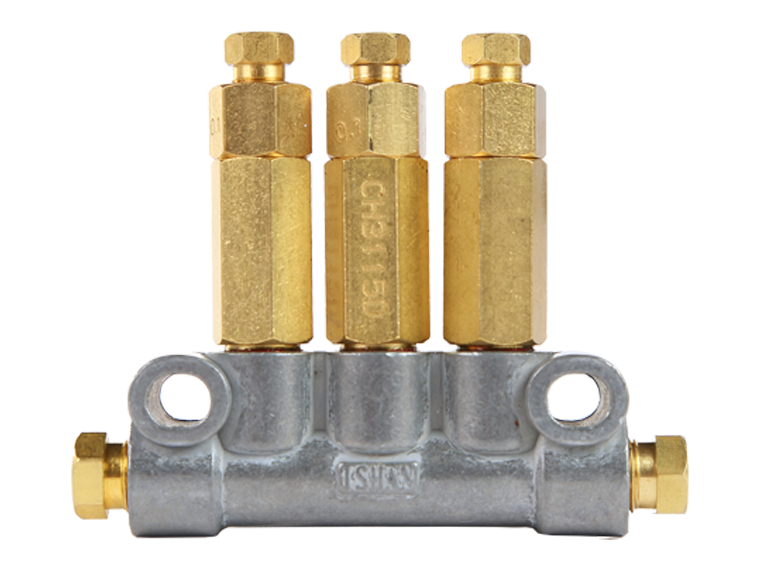 1、從油泵中壓送出來的潤滑油,使分配器中的傘形閥開始往上推動;