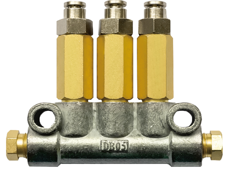 1.從油泵中壓送出來的潤滑油,使分配器中的傘形閥開始往上推動;
